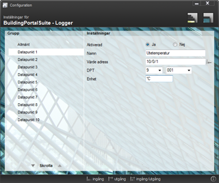 Logger för BuildingPortalSuite kostar 1500 SEK i grundutförande (10 datapunkter).
